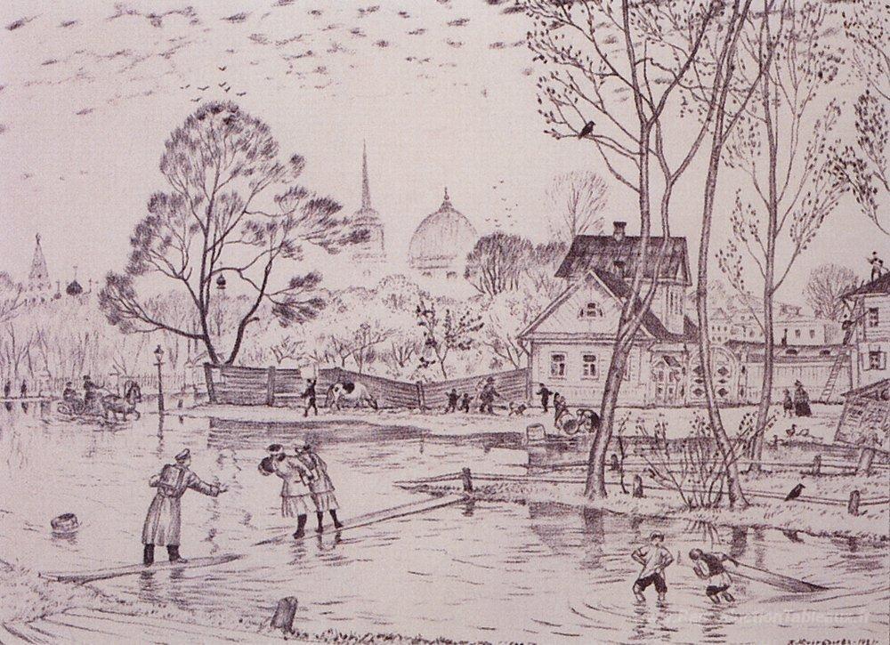 Nous vous proposons une reproduction artisanale sur toile du célèbre tableau 'Printemps' de Boris Kustodiev, provenant du Musée de la Reproduction.