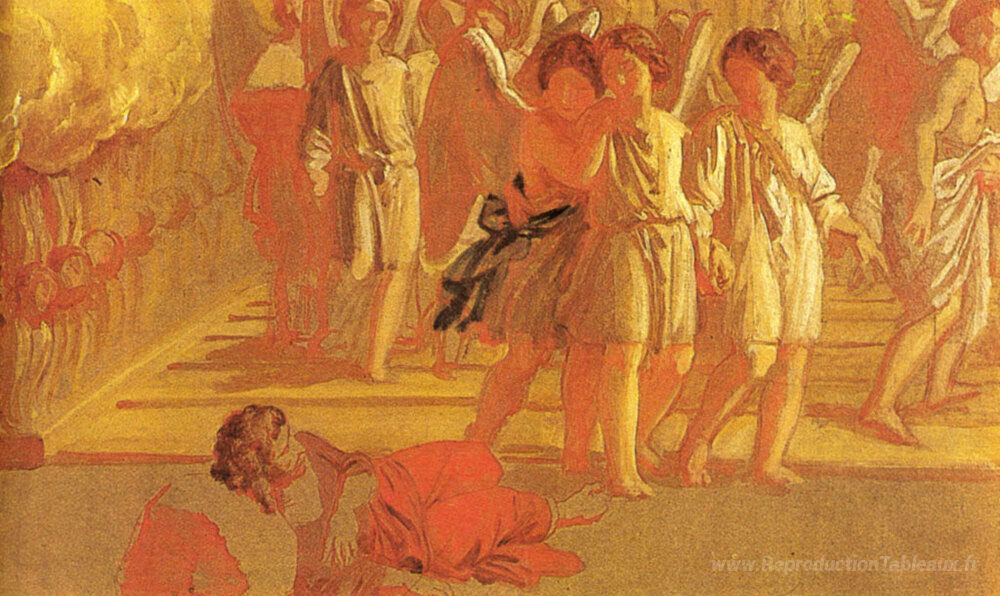 Nous vous proposons une reproduction artisanale sur toile du célèbre tableau 'Rêve de Jacob' de Alexander Ivanov, provenant du Musée de la Reproduction.