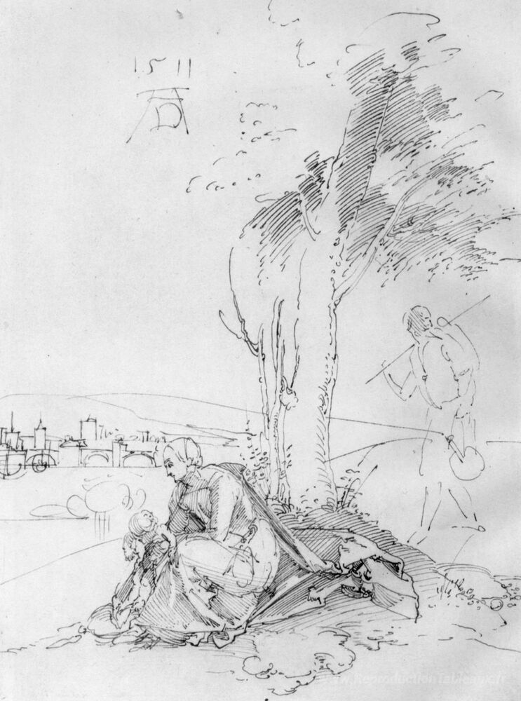 Nous vous proposons une reproduction artisanale sur toile du célèbre tableau 'Reposez-vous sur le vol' de Albrecht Durer, provenant du Musée de la Reproduction.