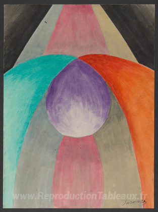 Nous vous proposons une reproduction artisanale sur toile du célèbre tableau 'Rythme coloré: étude pour le film' de Leopold Survage, provenant du Musée de la Reproduction.