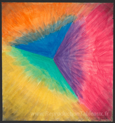 Nous vous proposons une reproduction artisanale sur toile du célèbre tableau 'Rythme coloré: étude pour le film' de Leopold Survage, provenant du Musée de la Reproduction.