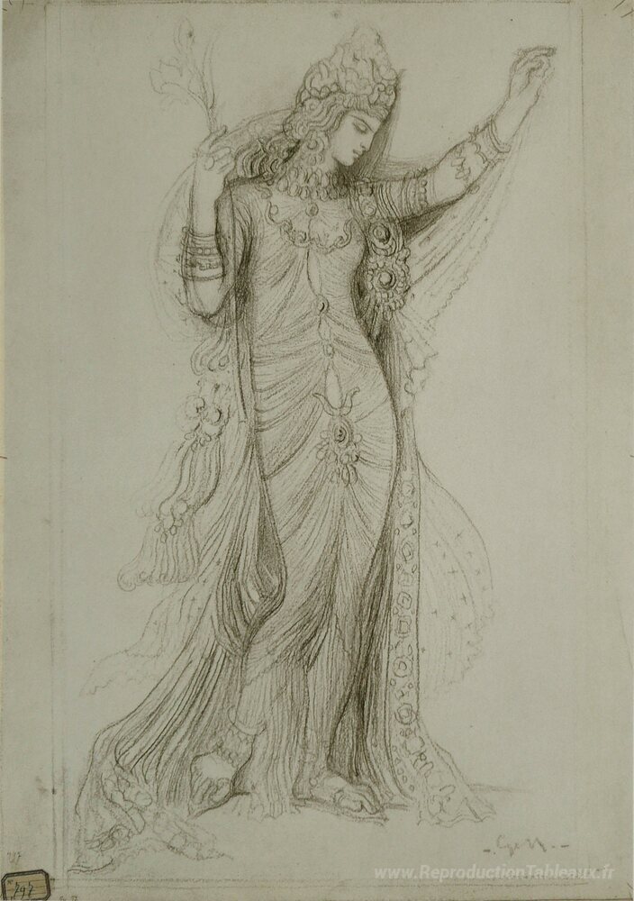 Nous vous proposons une reproduction artisanale sur toile du célèbre tableau 'Salomé' de Gustave Moreau, provenant du Musée de la Reproduction.