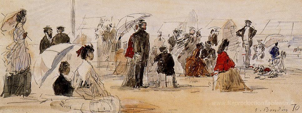 Nous vous proposons une reproduction artisanale sur toile du célèbre tableau 'Sans titre' de Eugene Boudin, provenant du Musée de la Reproduction.