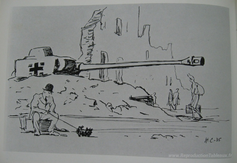 Nous vous proposons une reproduction artisanale sur toile du célèbre tableau 'Sans titre' de Kukryniksy, provenant du Musée de la Reproduction.