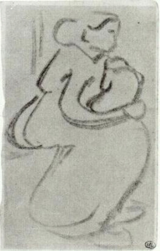 Nous vous proposons une reproduction artisanale sur toile du célèbre tableau 'Sket d'une femme avec un bébé sur ses genoux' de Vincent van Gogh, provenant du Musée de la Reproduction.