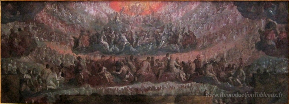 Nous vous proposons une reproduction artisanale sur toile du célèbre tableau 'Sketch pour paradis (pour décorer la salle du Grand Conseil du p' de Paolo Veronese, provenant du Musée de la Reproduction.