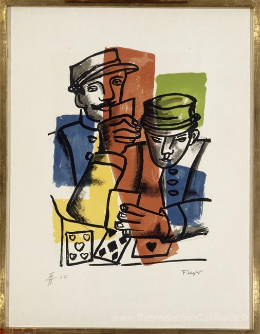 Nous vous proposons une reproduction artisanale sur toile du célèbre tableau 'Soldats' de Fernand Leger, provenant du Musée de la Reproduction.