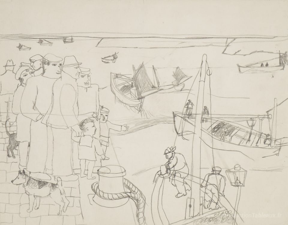 Nous vous proposons une reproduction artisanale sur toile du célèbre tableau 'St Ives' de Christopher Wood, provenant du Musée de la Reproduction.
