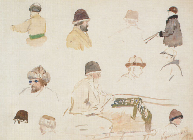 Nous vous proposons une reproduction artisanale sur toile du célèbre tableau 'Têtes masculines avec des capuchons d'hiver' de Vasily Surikov, provenant du Musée de la Reproduction.