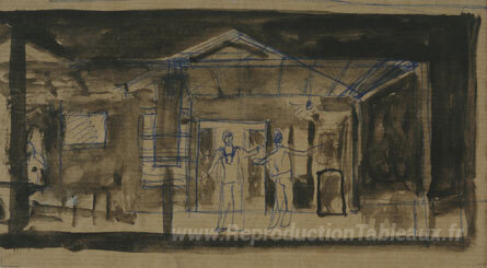 Nous vous proposons une reproduction artisanale sur toile du célèbre tableau 'Taverna à Perama avec dansant dans un Juke Box' de Yiannis Tsaroychis, provenant du Musée de la Reproduction.
