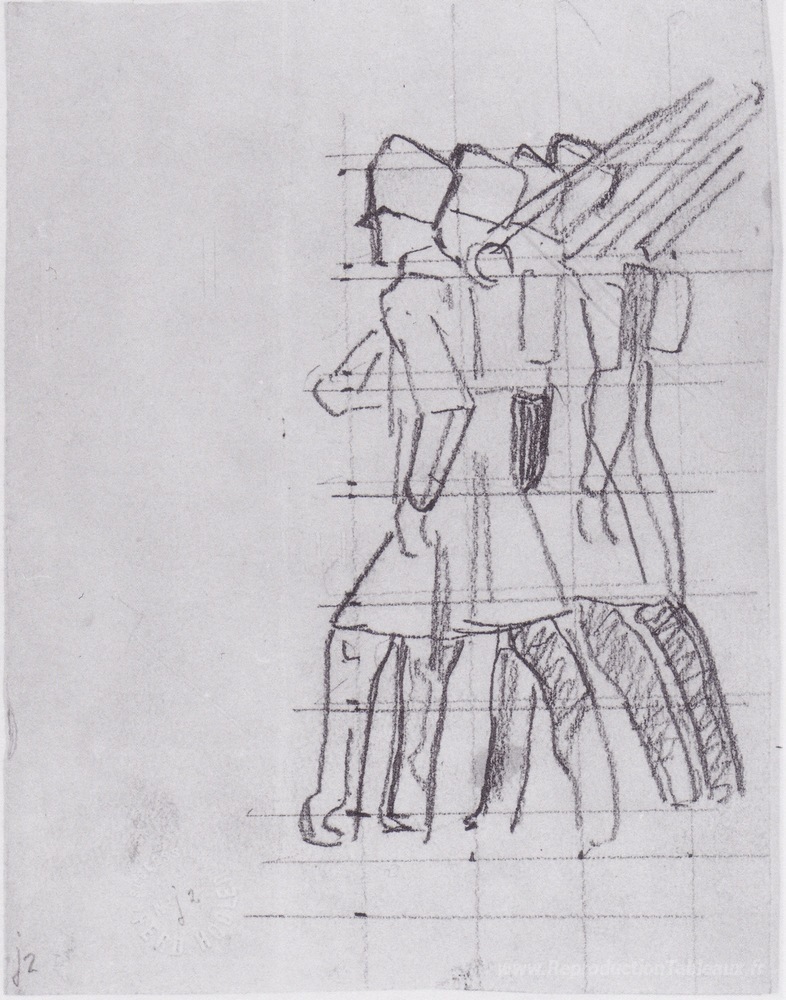 Nous vous proposons une reproduction artisanale sur toile du célèbre tableau 'Tirer les soldats' de Ferdinand Hodler, provenant du Musée de la Reproduction.