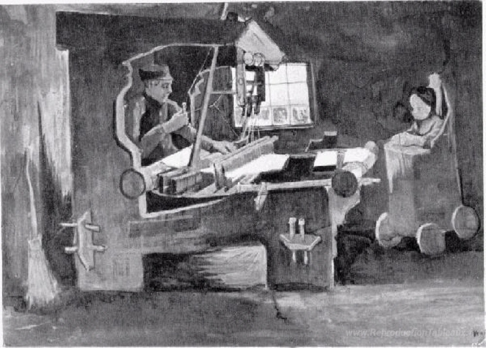 Nous vous proposons une reproduction artisanale sur toile du célèbre tableau 'Tisserand face à droite, intérieur avec une fenêtre et une chais' de Vincent van Gogh, provenant du Musée de la Reproduction.