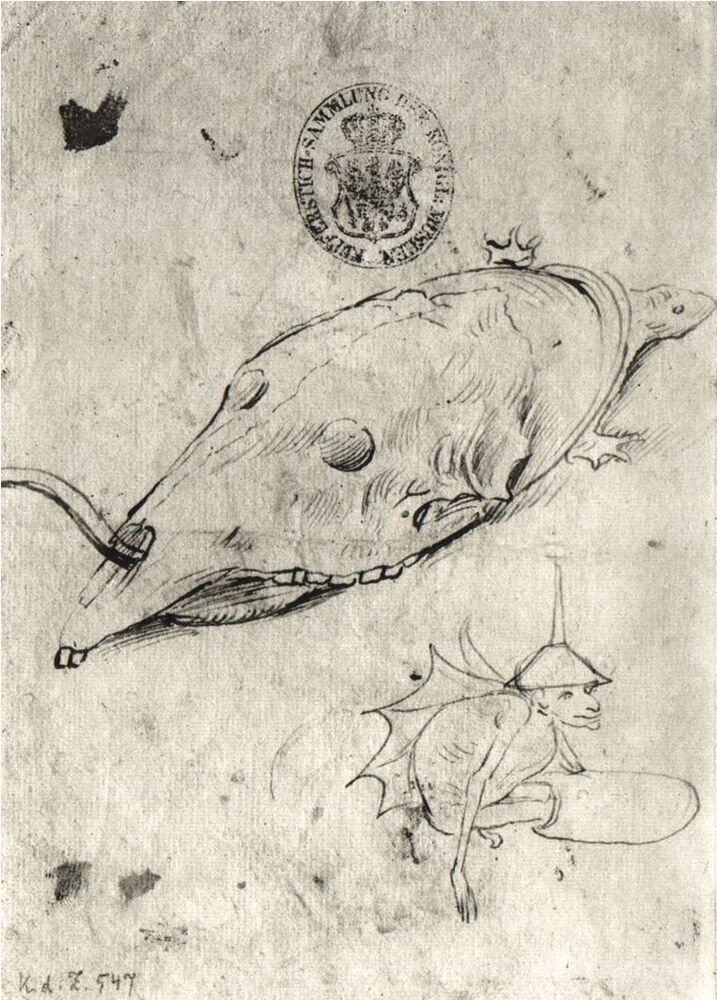 Nous vous proposons une reproduction artisanale sur toile du célèbre tableau 'Tortue et un démon ailé' de Hieronymus Bosch, provenant du Musée de la Reproduction.
