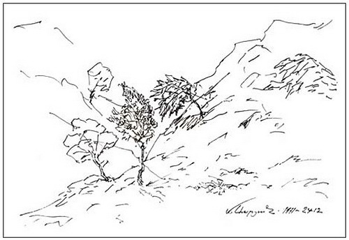 Nous vous proposons une reproduction artisanale sur toile du célèbre tableau 'Trois arbres' de Martiros Saryan, provenant du Musée de la Reproduction.