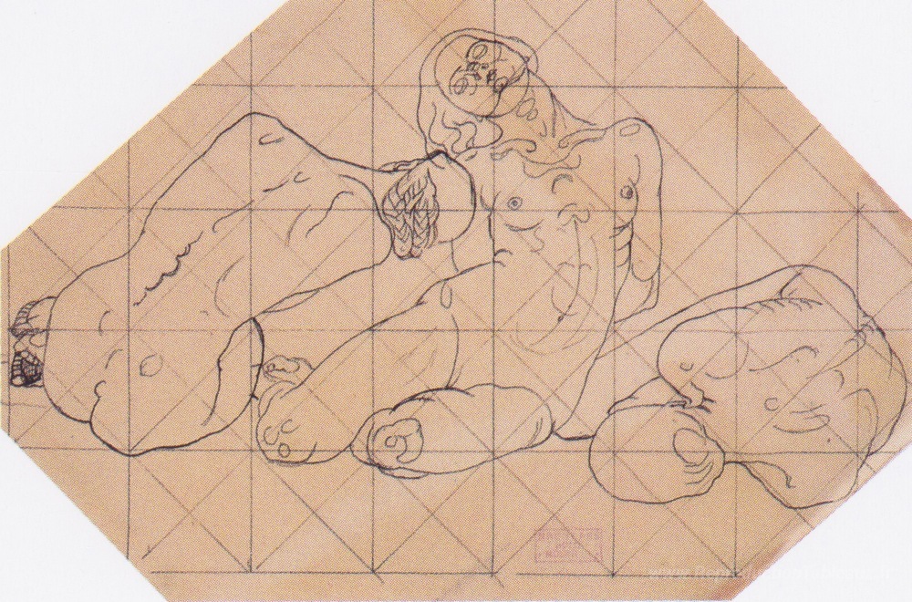 Nous vous proposons une reproduction artisanale sur toile du célèbre tableau 'Trois femmes accroupies' de Koloman Moser, provenant du Musée de la Reproduction.
