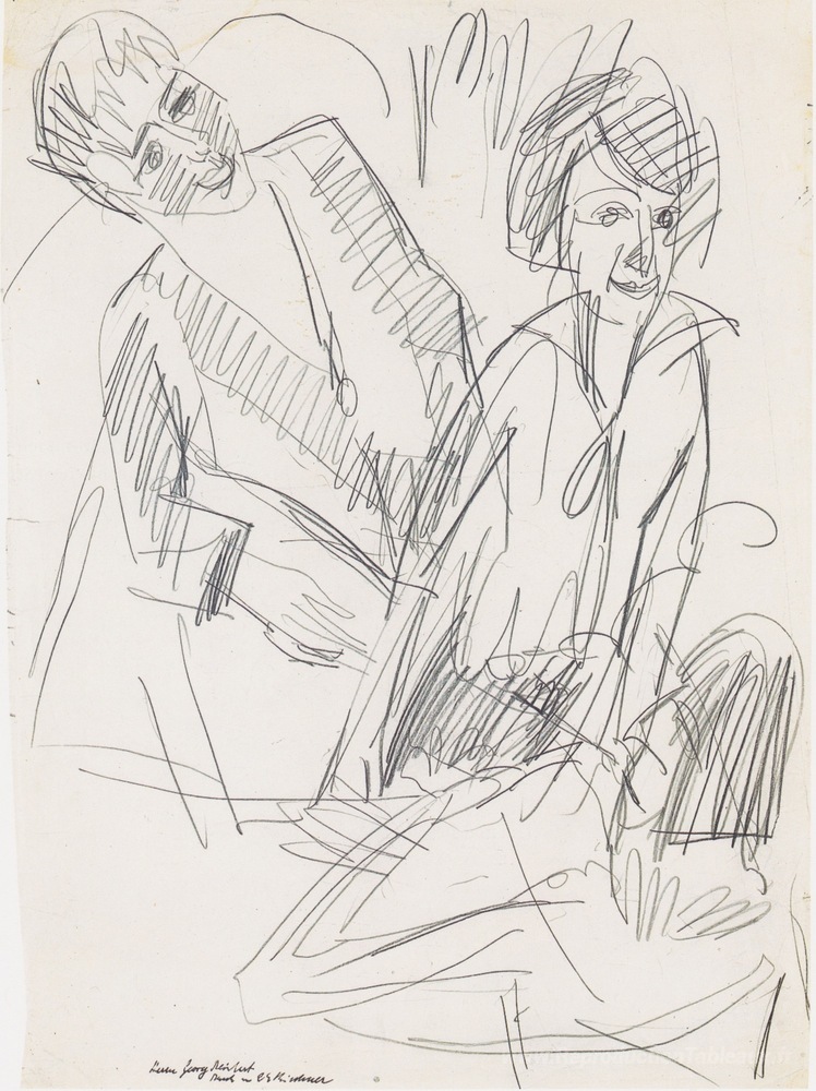 Nous vous proposons une reproduction artisanale sur toile du célèbre tableau 'Trois femmes' de Ernst Ludwig Kirchner, provenant du Musée de la Reproduction.