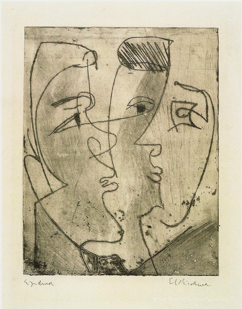 Nous vous proposons une reproduction artisanale sur toile du célèbre tableau 'Trois visages' de Ernst Ludwig Kirchner, provenant du Musée de la Reproduction.