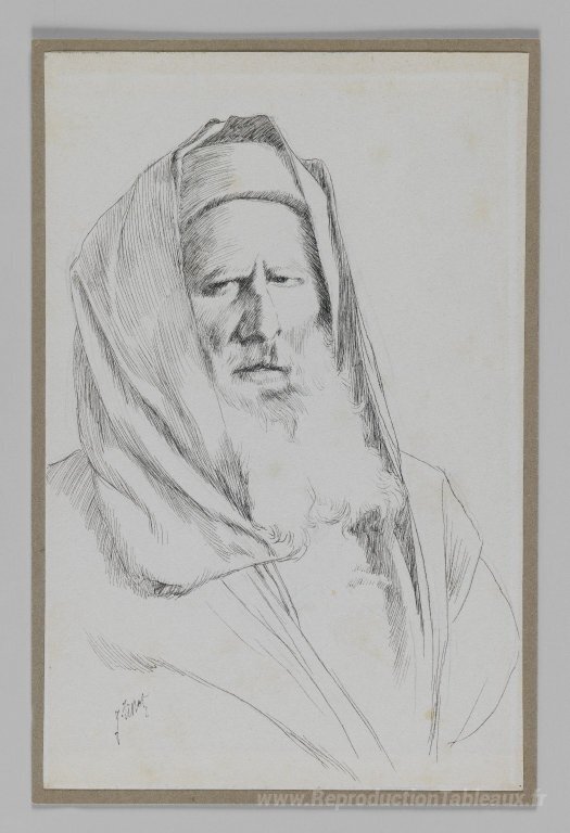 Nous vous proposons une reproduction artisanale sur toile du célèbre tableau 'Type de juif' de James Tissot, provenant du Musée de la Reproduction.