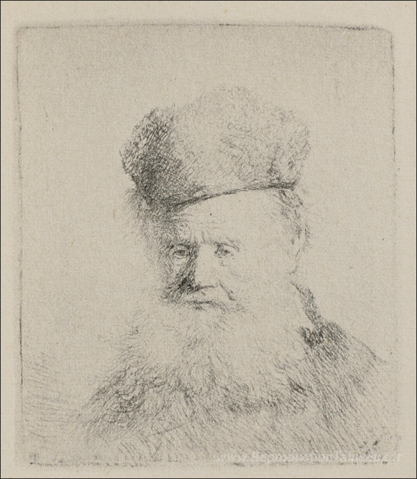 Nous vous proposons une reproduction artisanale sur toile du célèbre tableau 'Un homme avec une grande barbe et un basse capuchon en fourrure' de Rembrandt, provenant du Musée de la Reproduction.