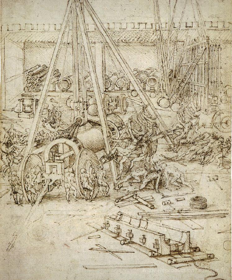 Nous vous proposons une reproduction artisanale sur toile du célèbre tableau 'Un parc d'artillerie.jpg' de Leonardo da Vinci, provenant du Musée de la Reproduction.