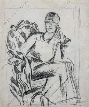 Nous vous proposons une reproduction artisanale sur toile du célèbre tableau 'Une esquisse d'une figure féminine, assise sur une chaise pour l' de Pyotr Konchalovsky, provenant du Musée de la Reproduction.