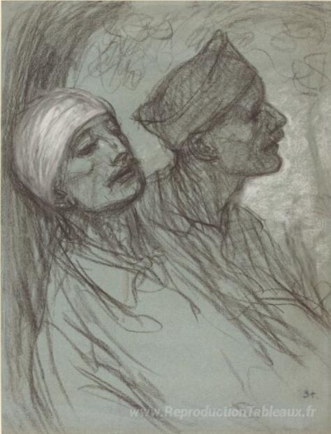 Nous vous proposons une reproduction artisanale sur toile du célèbre tableau 'Vente de Charité' de Theophile Steinlen, provenant du Musée de la Reproduction.