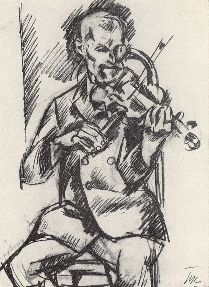 Nous vous proposons une reproduction artisanale sur toile du célèbre tableau 'Violoniste' de Pyotr Konchalovsky, provenant du Musée de la Reproduction.