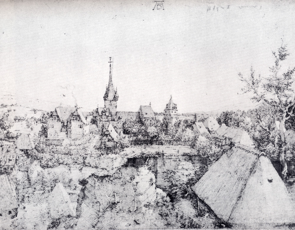 Nous vous proposons une reproduction artisanale sur toile du célèbre tableau 'Vue d'Heroldsberg' de Albrecht Durer, provenant du Musée de la Reproduction.