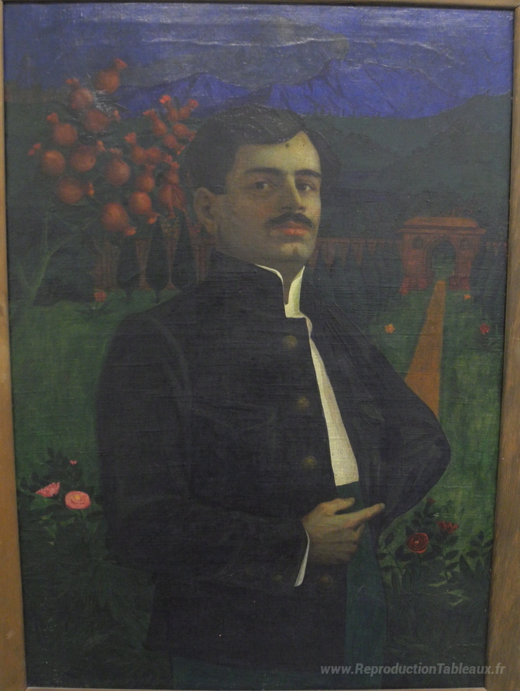 Nous vous proposons une reproduction artisanale sur toile du célèbre tableau 'autoportrait' de David Kakabadze, provenant du Musée de la Reproduction.