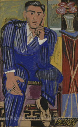 Nous vous proposons une reproduction artisanale sur toile du célèbre tableau 'Le penseur' de Yiannis Tsaroychis, provenant du Musée de la Reproduction.