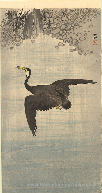 Nous vous proposons une reproduction artisanale sur toile du célèbre tableau 'Cormoran' de Ohara Koson, provenant du Musée de la Reproduction.