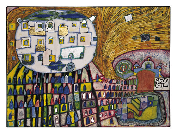 Nous vous proposons une reproduction artisanale sur toile du célèbre tableau '906 Cat domestique - Le chat d'Atlantis' de Friedensreich Hundertwasser, provenant du Musée de la Reproduction.