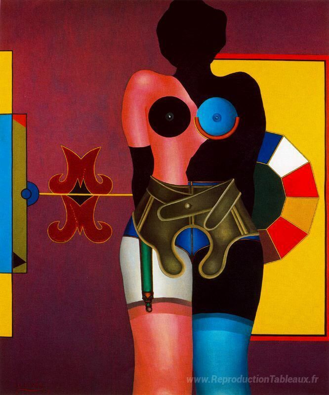 Nous vous proposons une reproduction artisanale sur toile du célèbre tableau 'Marilyn était là' de Richard Lindner, provenant du Musée de la Reproduction.