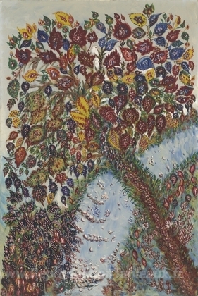 Nous vous proposons une reproduction artisanale sur toile du célèbre tableau 'Arbre ou paradis' de Seraphine Louis, provenant du Musée de la Reproduction.