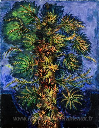 Nous vous proposons une reproduction artisanale sur toile du célèbre tableau 'Arbre' de Seraphine Louis, provenant du Musée de la Reproduction.