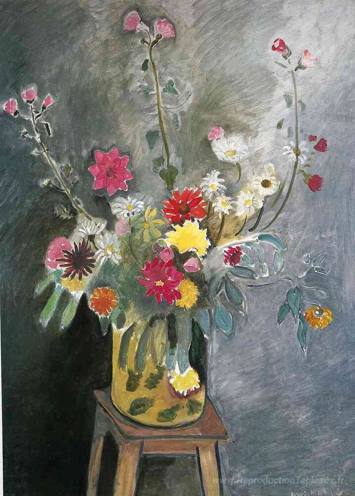Nous vous proposons une reproduction artisanale sur toile du célèbre tableau 'Bouquet de fleurs mélangées' de Henri Matisse, provenant du Musée de la Reproduction.