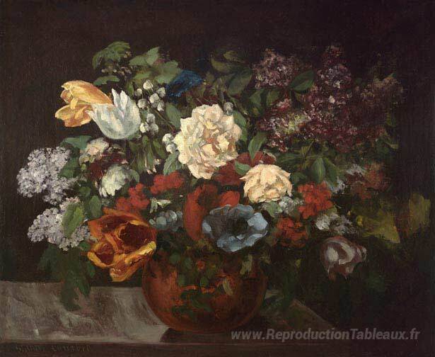 Nous vous proposons une reproduction artisanale sur toile du célèbre tableau 'Bouquet de fleurs' de Gustave Courbet, provenant du Musée de la Reproduction.
