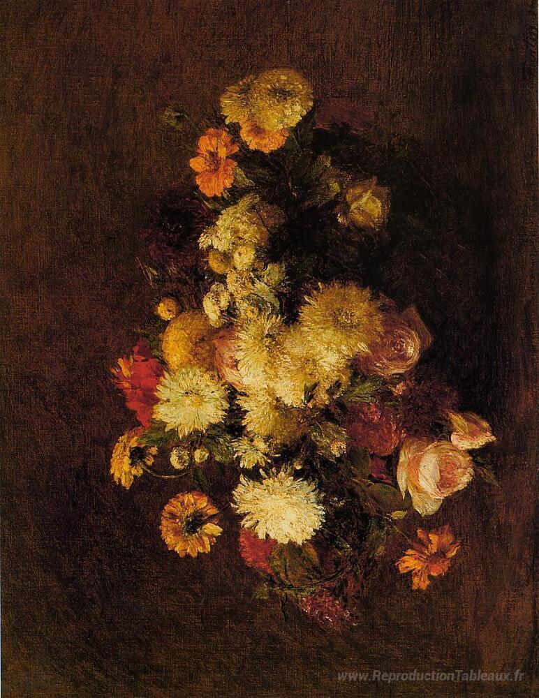 Nous vous proposons une reproduction artisanale sur toile du célèbre tableau 'Bouquet de fleurs' de Henri Fantin-Latour, provenant du Musée de la Reproduction.