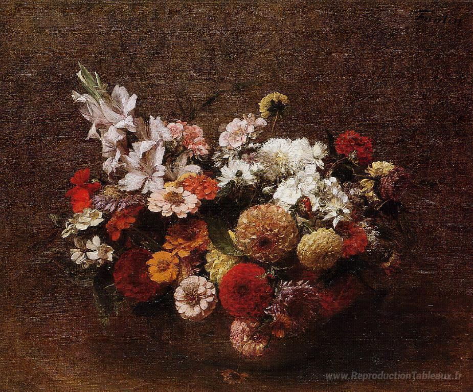 Nous vous proposons une reproduction artisanale sur toile du célèbre tableau 'Bouquet de fleurs' de Henri Fantin-Latour, provenant du Musée de la Reproduction.