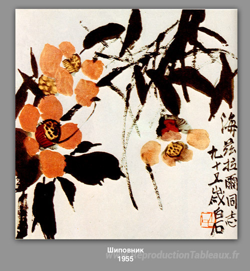 Nous vous proposons une reproduction artisanale sur toile du célèbre tableau 'Bruyère' de Qi Baishi, provenant du Musée de la Reproduction.