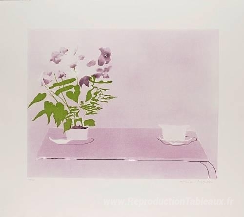 Nous vous proposons une reproduction artisanale sur toile du célèbre tableau 'Campanule' de Patrick Procktor, provenant du Musée de la Reproduction.