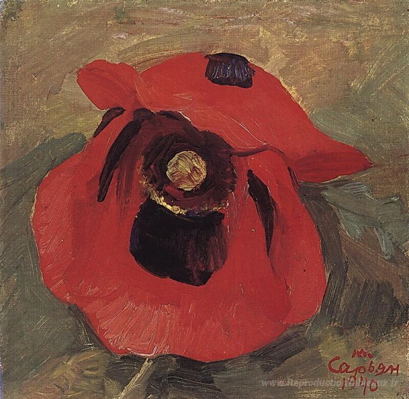 Nous vous proposons une reproduction artisanale sur toile du célèbre tableau 'Coquelicot' de Martiros Saryan, provenant du Musée de la Reproduction.