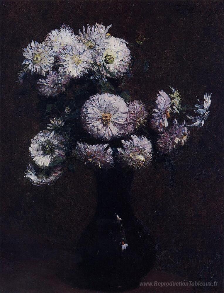 Nous vous proposons une reproduction artisanale sur toile du célèbre tableau 'Crisantemi' de Henri Fantin-Latour, provenant du Musée de la Reproduction.