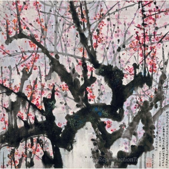 Nous vous proposons une reproduction artisanale sur toile du célèbre tableau 'Faire des fleurs' de Huang Yongyu, provenant du Musée de la Reproduction.