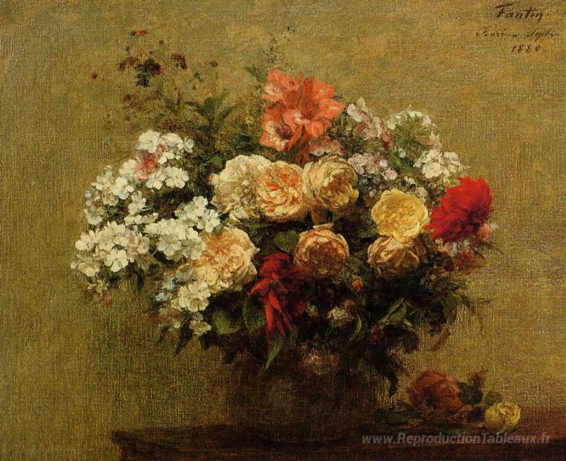 Nous vous proposons une reproduction artisanale sur toile du célèbre tableau 'Fleurs d'été' de Henri Fantin-Latour, provenant du Musée de la Reproduction.