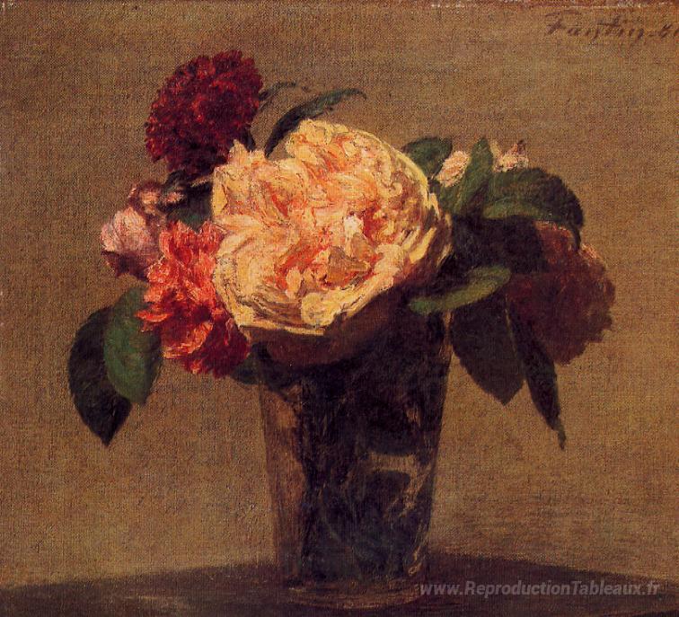 Nous vous proposons une reproduction artisanale sur toile du célèbre tableau 'Fleurs dans un vase' de Henri Fantin-Latour, provenant du Musée de la Reproduction.