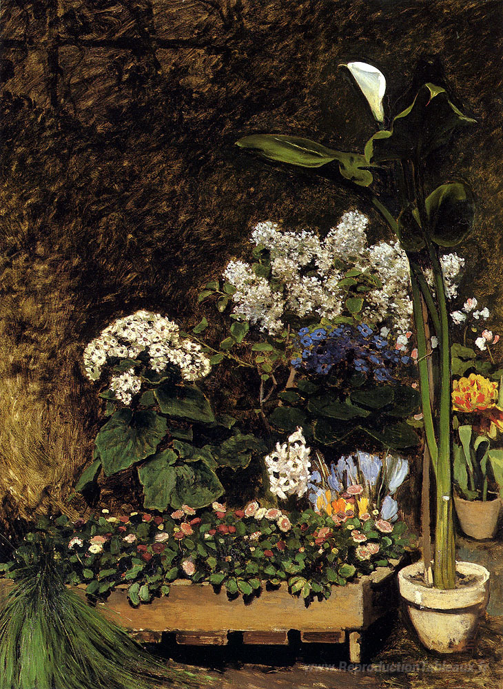 Nous vous proposons une reproduction artisanale sur toile du célèbre tableau 'Fleurs de printemps' de Pierre-Auguste Renoir, provenant du Musée de la Reproduction.