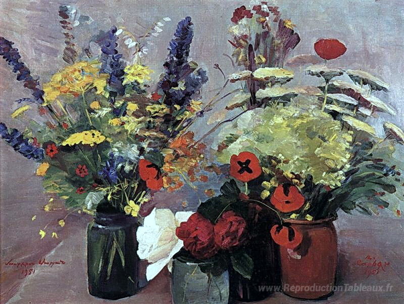 Nous vous proposons une reproduction artisanale sur toile du célèbre tableau 'Fleurs sauvages' de Martiros Saryan, provenant du Musée de la Reproduction.