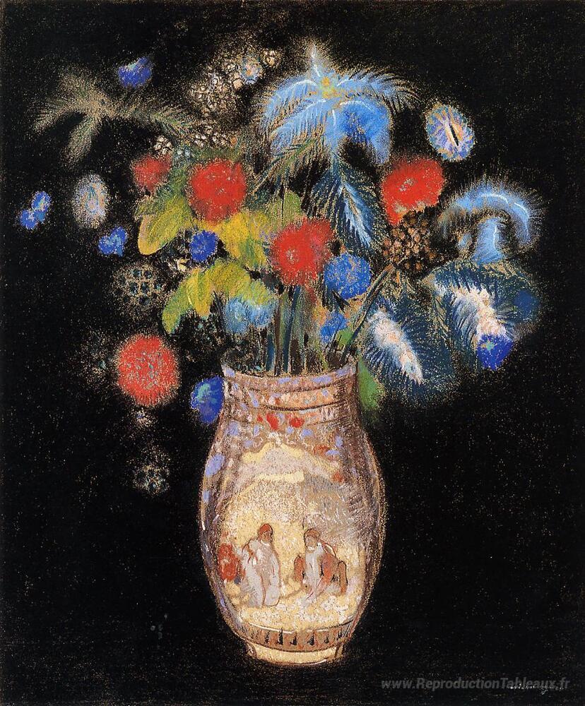 Nous vous proposons une reproduction artisanale sur toile du célèbre tableau 'Grande bouquet sur fond noir' de Odilon Redon, provenant du Musée de la Reproduction.