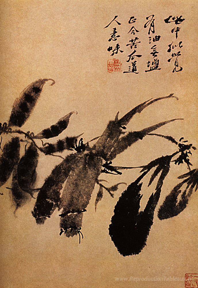 Nous vous proposons une reproduction artisanale sur toile du célèbre tableau 'Jardins à légumes' de Shitao, provenant du Musée de la Reproduction.